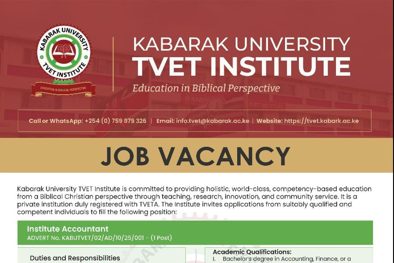 Kabarak University TVET Institute is an institution that focuses on providing excellent technical and vocational education. We offer a wide variety of post-secondary programs in subjects such as nutrition, computer science, and music. We are committed to equipping our students with the necessary skills for success in various fields. We also offer professional courses, including Certified Public Accountant (CPA) training. Read More...